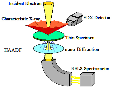 When a sample is irradiated with electrons accelerated to several hundred kV, not only transmission and diffraction but also various interactions occur. Elemental analysis with a spatial resolution of about 1 nm using EDX and EELS is widely used, and chemical state analysis using EELS has also come to be used.