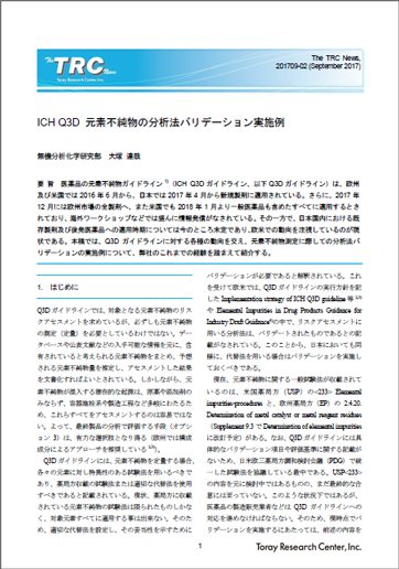 ①CH Q3D 元素不純物の分析法バリデーション実施例(TRC News 2017年9月)