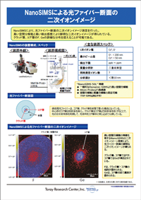 NanoSIMSにより、光ファイバー断面の二次イオンイメージ測定を行った。高い空間分解能と高い検出感度により鮮明な二次イオンイメージが得られている。クラッド層、コア層のF, Geの詳細な分布を捉えることが可能である。
